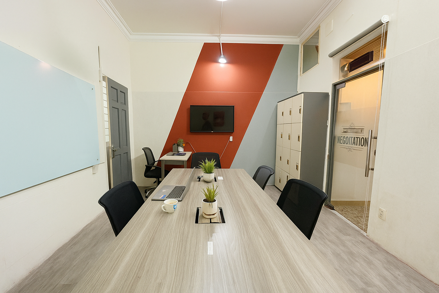 Không gian riêng tư để họp team, gặp gỡ đối tác hoặc training với sức chứa đến 12 người. Được bố trí và trang bị đầy đủ thiết bị chuyên nghiệp: Smart Tivi, wifi mạnh, locker và pantry. Đảm bảo sự tập trung và hiệu quả cho mọi buổi làm việc.