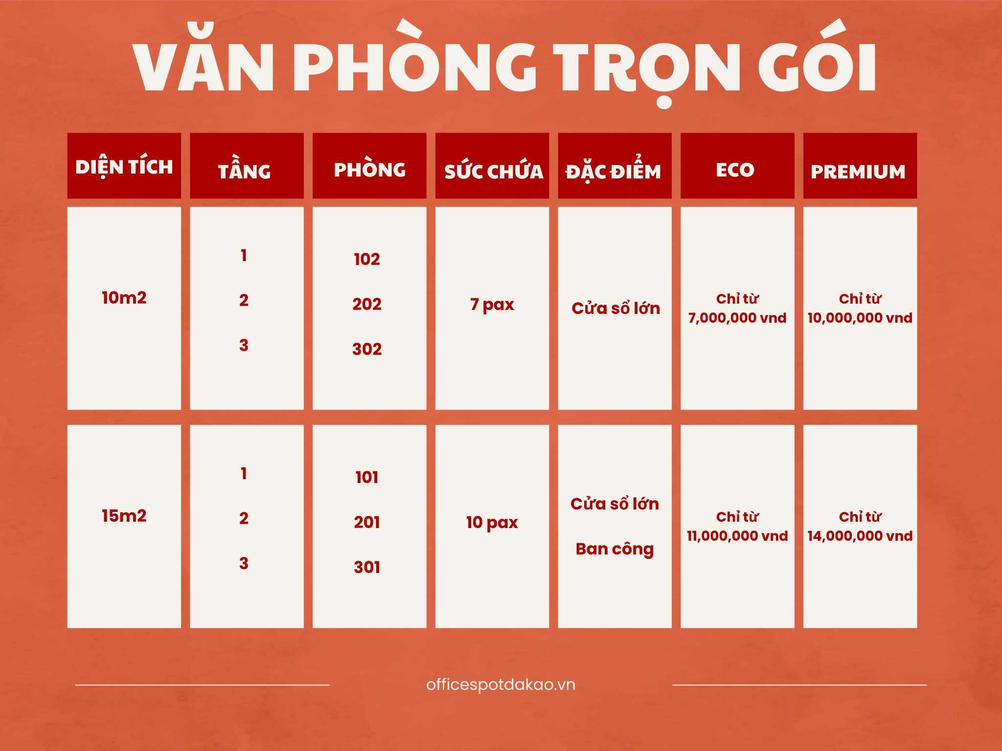 Không gian riêng tư với sức chứa lên đến 12 người, đầy đủ tiện ích: pantry, phòng họp, in ấn, nhận thư từ…
